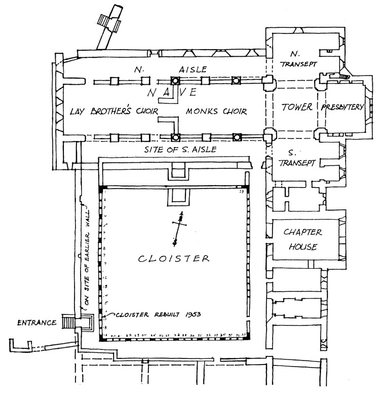 Cistercian Abbey of Jerpoint, County Kilkenny, Ireland Jerpoint is thought to have been founded between 1163 and 1165 by Donal MacGillapatrick I, King of Ossory. Romanesque architecture in the eastern arm of the abbey church also favours this date. However, Jerpoint was not officially recognised as part of the Cistercian Order until 1180, when it was made a daughter house of Baltinglass. There is some debate surrounding the abbey’s history before this date, some believe the community was Benedictine others say that the monks had been Cistercian from the time of the foundation (Note that the Irish Office of Public Works, who maintain the site, agree that it was taken over by the Cistercians). The abbey was situated beside the river Eoir or Arrigle, not far from its confluence with the Nore. The Latin name of the abbey, ‘Jeripons’, apparently refers to the bridge over the River Eoir. The construction of the stone church was begun not long after the initial settlement and finished c.1200-1210. Jerpoint had two daughter houses, Kilkenny (1162-5) and Kilcooly (1184). In 1217 the Cistercian General Chapter organised a general visitation of Ireland in order to investigate disturbing reports about the conduct of some their Irish brethren. When the visitor arrived at Jerpoint he was greeted with a riot, in which four other abbeys were involved. The abbot of Jerpoint was held responsible and soon after deposed. In 1227 Jerpoint was made subject to Fountains and in 1228 Stephen of Lexington deprived Abbot Brendan of his title and ordered him to go to Fountains for two years. After Stephen of Lexington visited Jerpoint in 1228 he drew up a long list of rules and regulations to be carefully followed by the Cistercian monks of Ireland. Stephen was clearly unimpressed with what he had found at Jerpoint: too much idle chatter, eating and drinking, too much concern for personal belongings and too much contact with outside world. Specific information concerning building regulations was also amongst the criticism directed at Jerpoint and Duiske. At the time of Stephen’s visitations the number of religious at Jerpoint was fixed at 36 monks and 50 lay-brothers. The abbots of Jerpoint sat as peers in parliament. By end of the 13th Century Jerpoint was heavily in debt to Italian merchants as a result of the practice of forward buying (receiving payment in advance of production, in this instance of wool). In 1289 the monks owed the firm of Bendinus Pannyth of Lucca almost £430. In 1374 Jerpoint complained to the Bishop of Ossory that it was so impoverished by war between the Irish and the English in the region that it could not fulfil its obligations of hospitality. In 1442 the abbey was granted an indulgence for the repair of the cloister, dormitory, bell-tower, other offices and the chapel of St. Moling. However, in relative terms the abbey was not as hard up as it seemed. At the time of the Dissolution the annual income of the abbey was valued at £87, making Jerpoint one of the richest Cistercian abbeys in Ireland, and comparable in value with the smaller Cistercian monasteries in England. In 1539 the Lord Deputy proposed that the monastery should continue, the monks changing into a secular habit and the monastery serving as a house of hospitality. It seems the proposal was dismissed and the abbey was surrendered by the last abbot, Oliver (Grace), in 1540. In 1541 the royal commissioners reported that the roof of the chancel had already been thrown and that the nave had served as a parish church for some time prior to the Dissolution. The commissioners also ordered that the cloister, dormitory and adjoining buildings should be demolished, and the others left for the local farmer. Following the Dissolution the property was granted to James Butler, Earl of Ormond and the property included a castle, several watermills, cottages, weirs and fisheries, and approximately 14,500 acres of land. Today there are extensive ruins including the church (c.1160-1200) and an imposing crossing tower added in the 15th Century. The six bay nave has alternating square and cylindrical piers, following the design at Baltinglass, although this design was abandoned in the final two bays in favour of octagonal piers. This was probably the result of a lengthy and disjointed period of construction. The sacristy, chapter house and parlour also remain but the south and west ranges are far more fragmentary. The cloister arcade was reconstructed in 1953. The capitals are decorated with human faces, animals, grotesque beasts and flowers. There is even a carving of a man with stomach ache. The sculpted images belong to ‘the common stock of motifs used by Gothic craftsmen throughout the British Isles’, and it is thought that the statues date from c.1400. The church also contains a selection of tombs and grave slabs, including two fine effigies of ecclesiasts. The tomb of Bishop O’Dulany (died 1202) lies in the church transept. On the chancel are faded wall paintings depicting stylized portraits of saints. The site, two kilometres south of Thomastown, has been in the care of the Office of Public Works since 1880. The ruins can be accessed by the public at all times. Source: University of Sheffield - The Cistercians in Yorkshire Project and Office of Public Works.